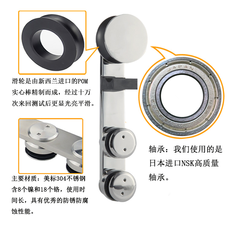 佛山廠家供應(yīng)帶防脫不銹鋼滑輪平穩(wěn)耐磨滑動(dòng)門(mén)五金304不銹鋼玻璃滑輪
